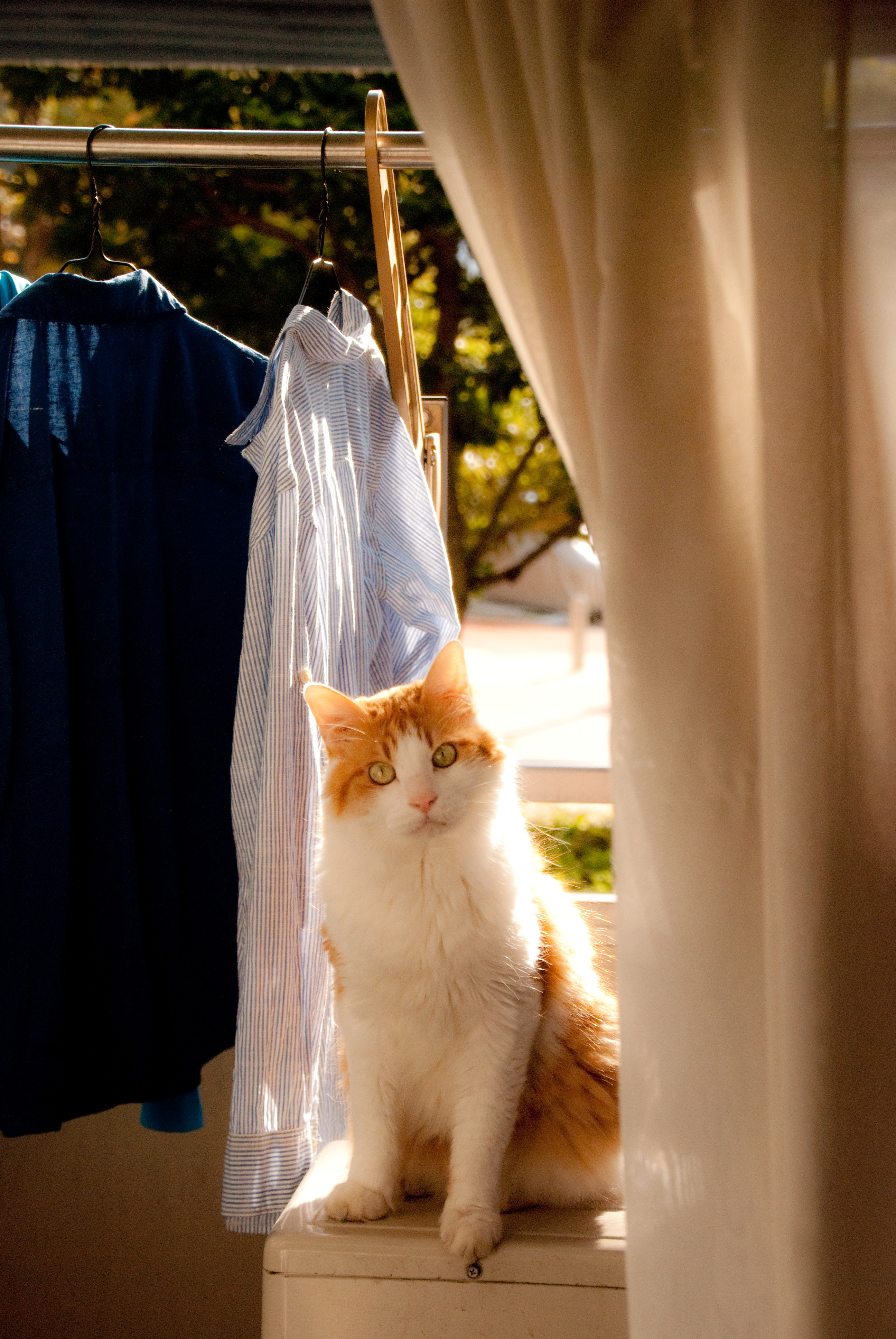 朝の窓辺にのるを探し、